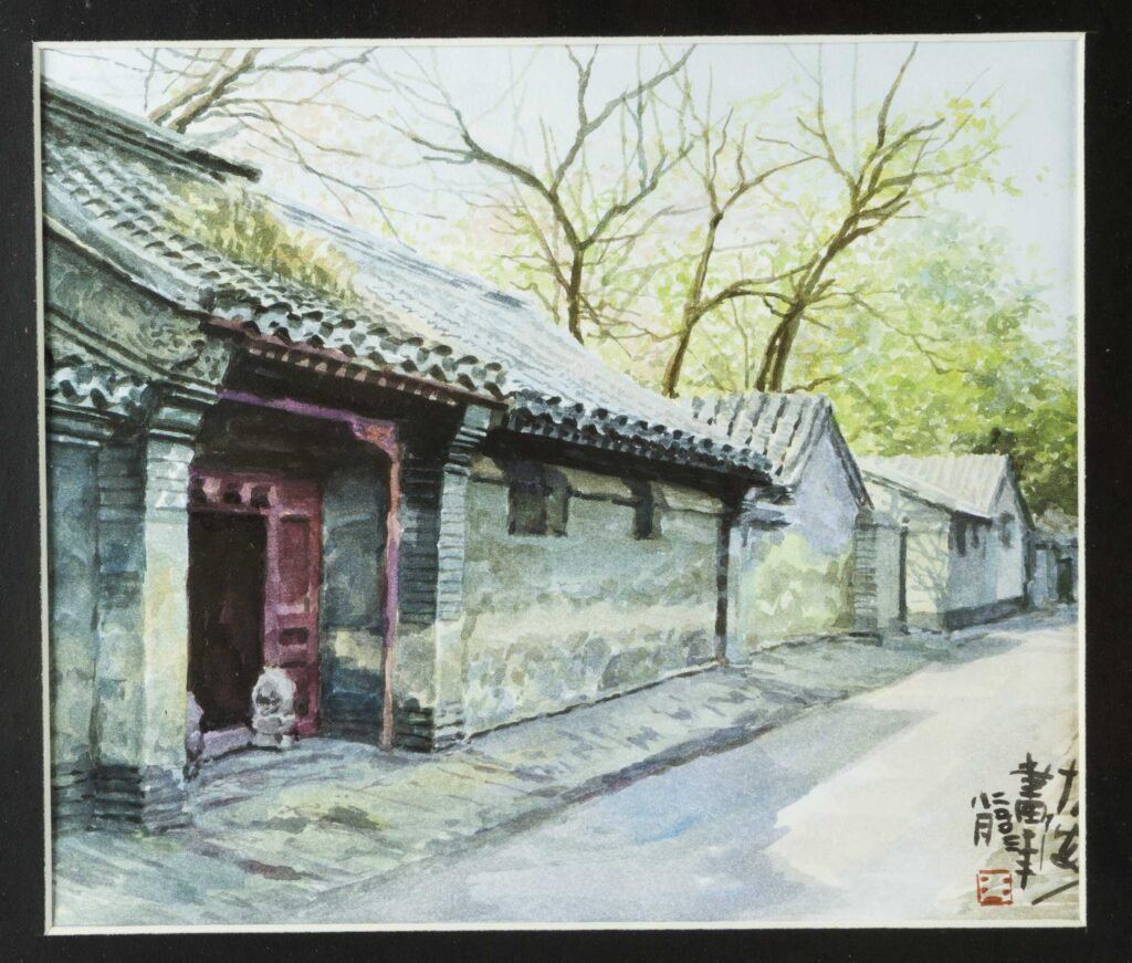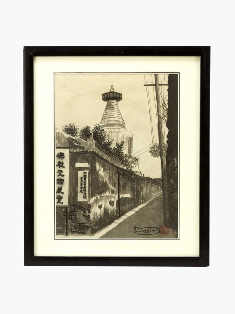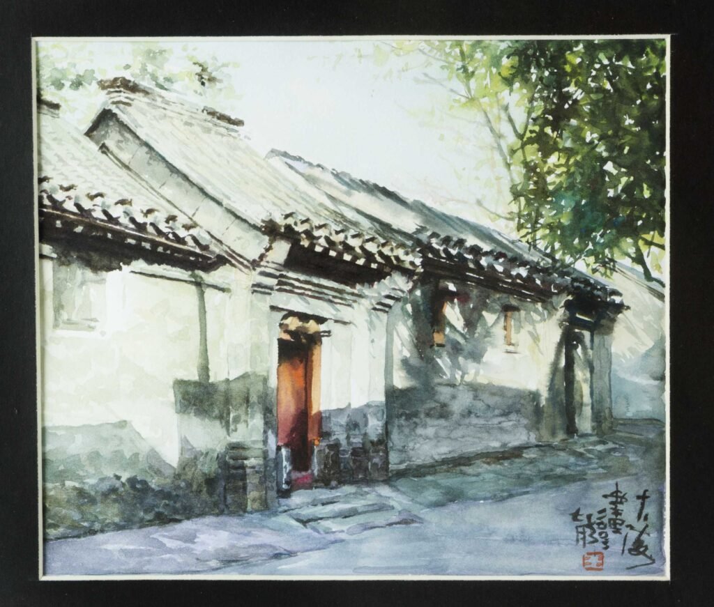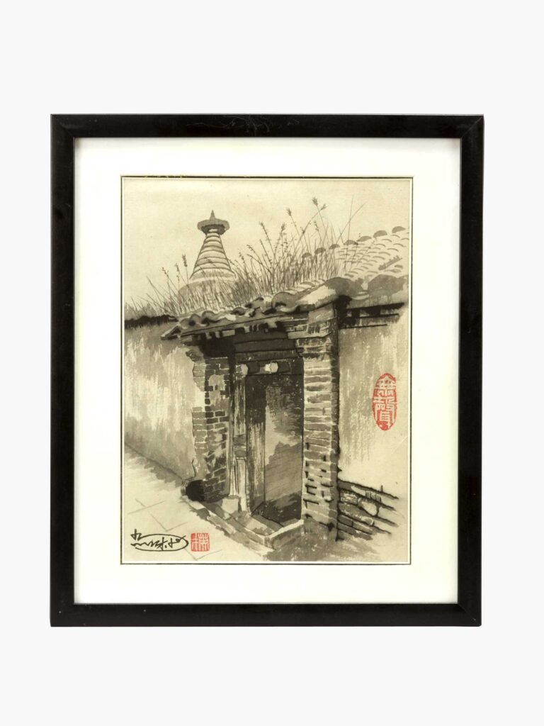 Aquarell auf Papier, signiert und mit roten Künstlersiegeln, imPassepartout, verglast ubnd in schwarzem Lackrahmen.
